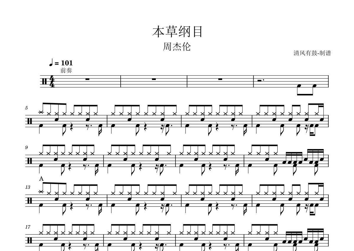 周杰伦《本草纲目》鼓谱 - 架子鼓谱