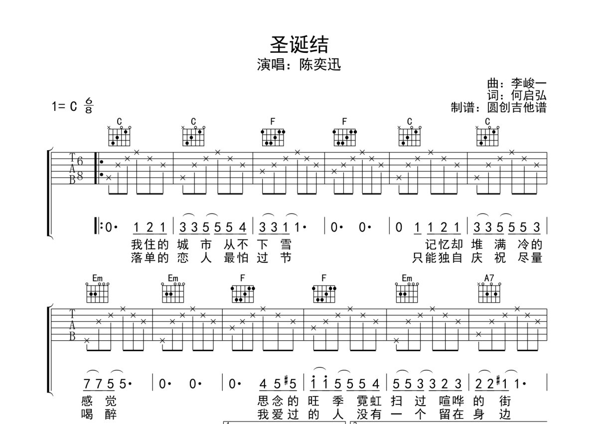 陈奕迅《圣诞结》吉他谱 - C调弹唱六线谱