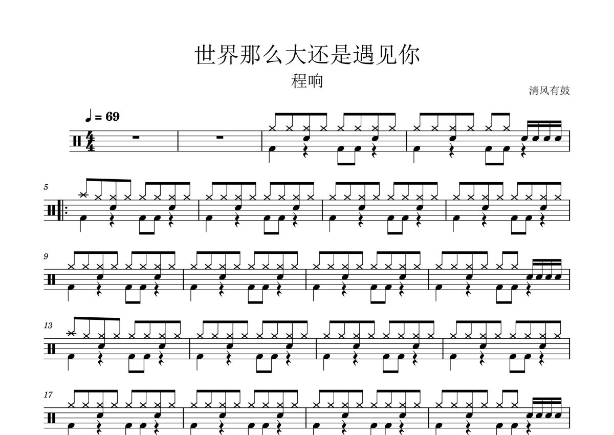 《世界那么大还是遇见你》是程响演唱的一首歌曲,这份鼓谱共有两张高清图谱,图谱由 @王远康 编配上传,图谱使用五线谱编配,使用这份世界那么大还是遇见你架子鼓谱,你将能够轻松地敲打出这首程响的世界那么大还是遇见你,快来尝试吧。程响《世界那么大还是遇见你》架子鼓谱,清风有鼓编配出品,共有2张高清图谱,免翻页排版设计。