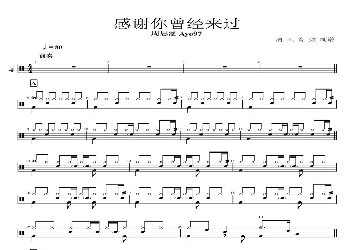 周思涵Ayo97《感谢你曾经来过》鼓谱 - 架子鼓谱