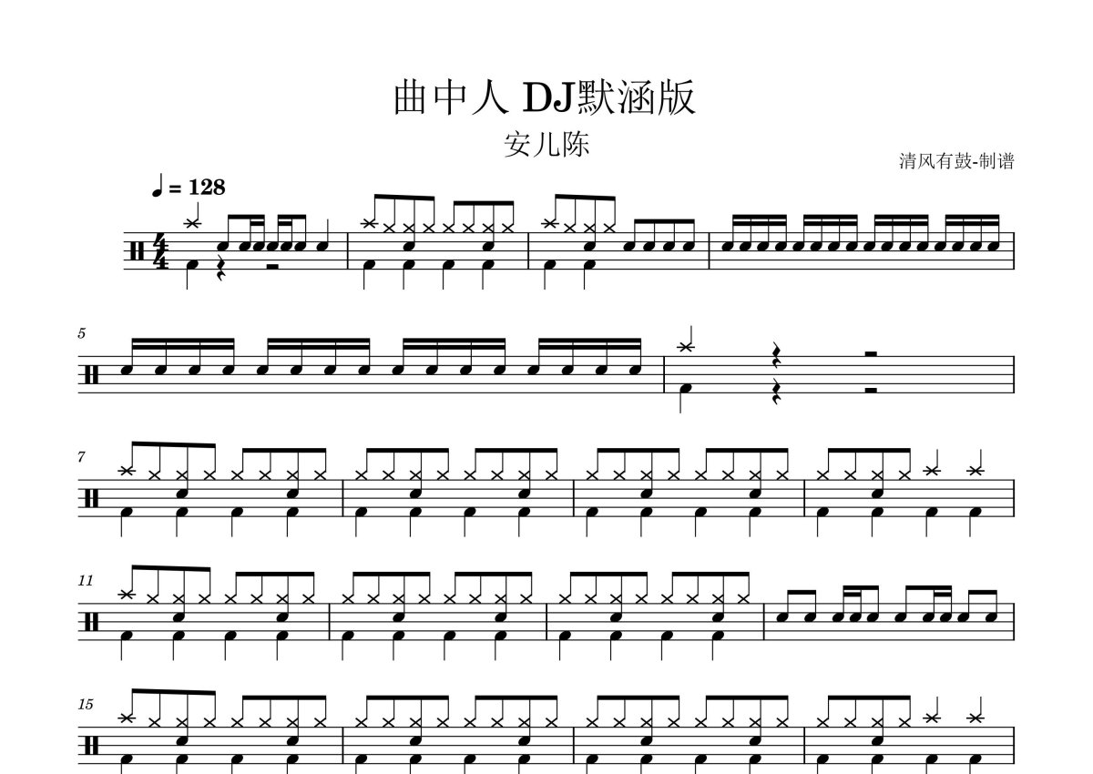 安儿陈《曲中人》鼓谱 - 架子鼓谱 - DJ默涵版