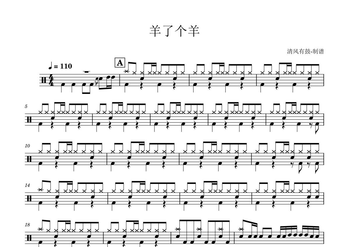 《羊了个羊背景音乐》,这份鼓谱共有两张高清图谱,图谱由 @王远康 编配上传,图谱使用五线谱编配,使用这份羊了个羊背景音乐架子鼓谱,你将能够轻松地敲打出这首羊了个羊背景音乐,快来尝试吧。羊了个羊背景音乐《羊了个羊》架子鼓谱,清风有鼓编配出品,共有2张高清图谱,免翻页排版设计。