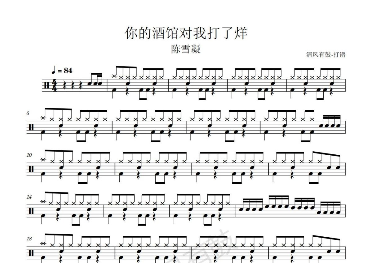 陈雪凝《你的酒馆对我打了烊》鼓谱 - 架子鼓谱