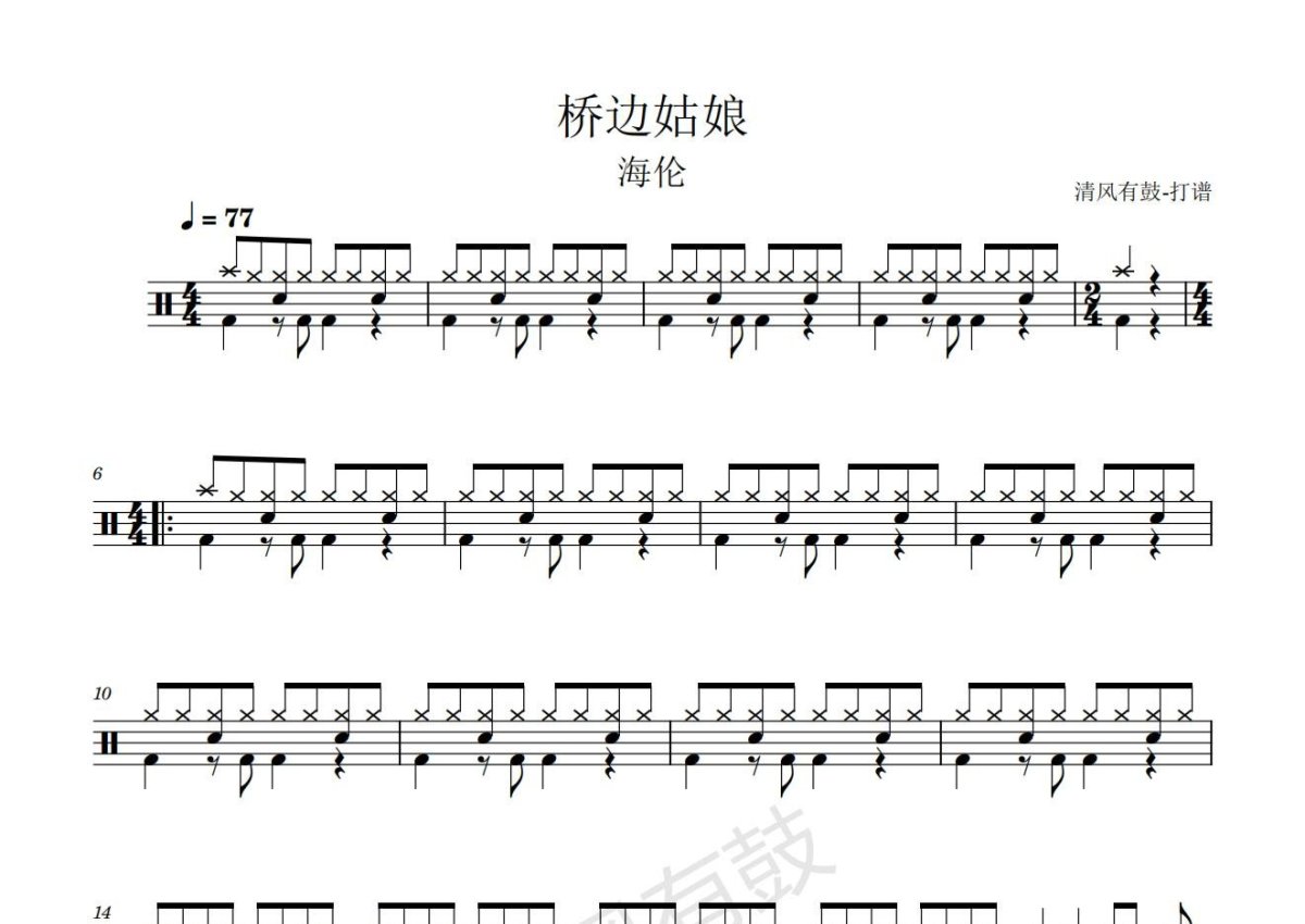海伦《桥边姑娘》鼓谱 - 架子鼓谱