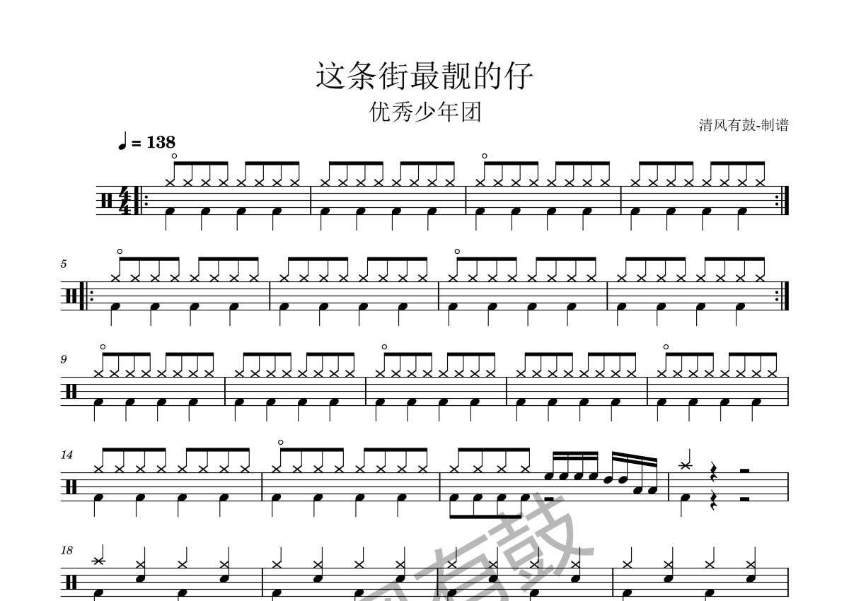 优秀少年团《这条街最靓的仔》鼓谱 - 架子鼓谱