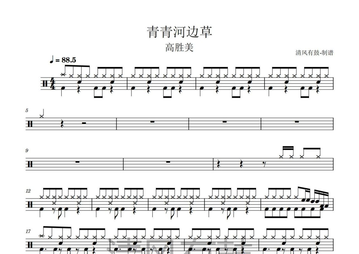高胜美《青青河边草》鼓谱 - 架子鼓谱