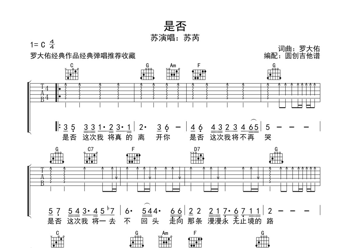 罗大佑《是否》吉他谱 - C调弹唱六线谱