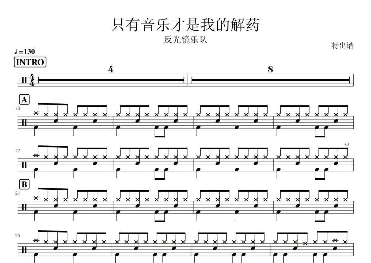 反光镜乐队《只有音乐才是我的解药》鼓谱 - 架子鼓谱