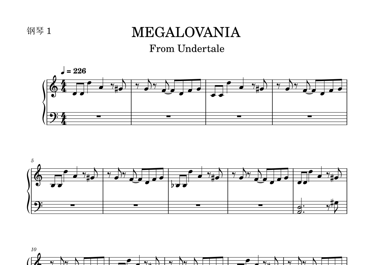 《MEGALOVANIA》是Toby Fox演唱的一首歌曲,这份钢琴谱共有五张高清图谱,图谱由 @Harryjin 编配上传,曲谱配备了相关的音频提供试听,使用这份MEGALOVANIA钢琴谱,可以让你更加方便地掌握这首歌曲的演奏技巧,快来尝试吧。TobyFox《MEGALOVANIA》钢琴谱,Harryjin编配出品,共有5张高清图谱。