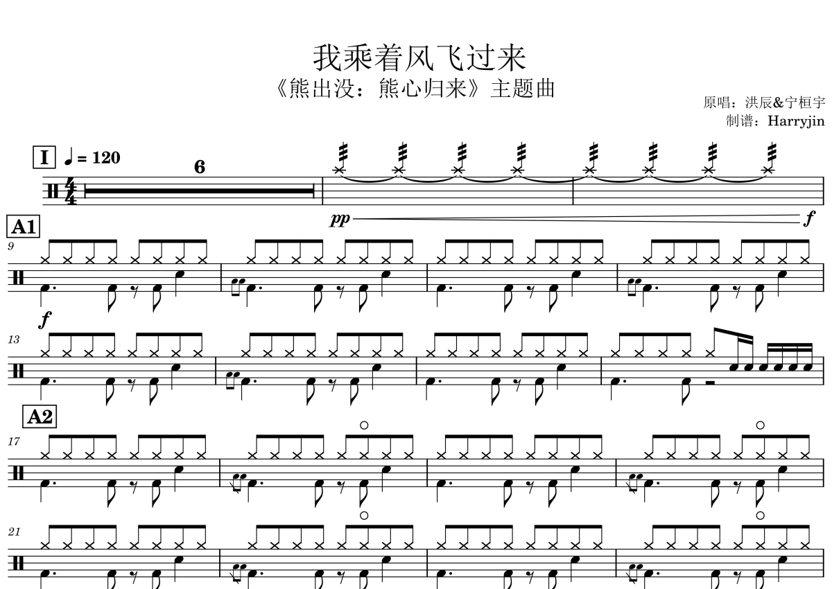 《我乘着风飞过来》是洪辰&宁恒宇演唱的一首歌曲,这份鼓谱共有三张高清图谱,图谱由 @Harryjin 编配上传,图谱使用五线谱编配,使用这份我乘着风飞过来架子鼓谱,你将能够轻松地敲打出这首洪辰&宁恒宇的我乘着风飞过来,快来尝试吧。洪辰&宁恒宇《我乘着风飞过来》架子鼓谱,Harryjin编配出品,共有3张高清图谱。