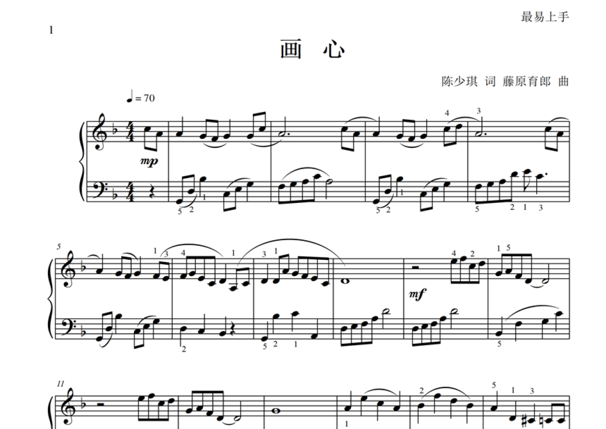 藤原育郎《画心》钢琴谱