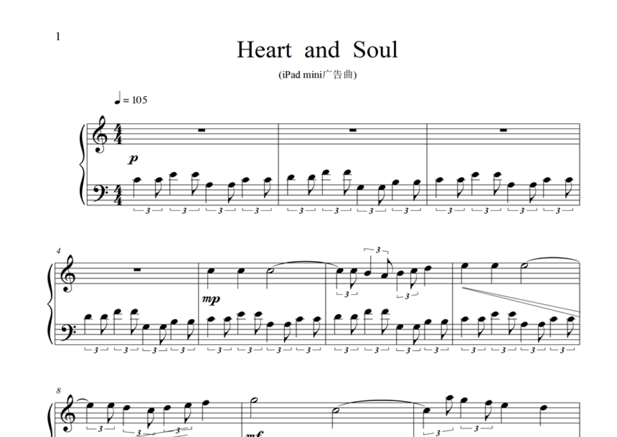 ipad mini 广告《Heart and Soul》钢琴谱 - 钢琴曲