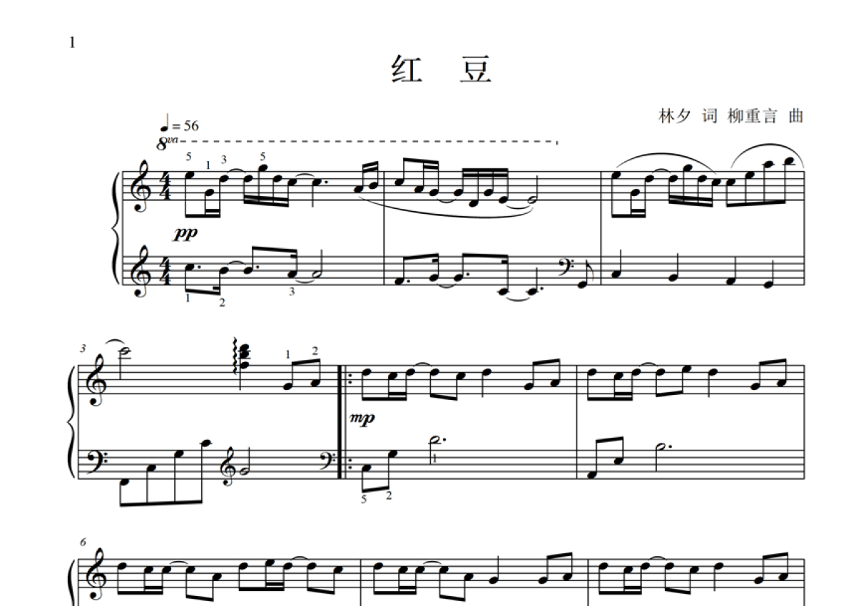 《红豆》是王菲演唱的一首歌曲,这份钢琴谱共有三张高清图谱,图谱由 @Corpse-R@yMan 编配上传,使用这份红豆钢琴谱,可以让你更加方便地掌握这首歌曲的演奏技巧,快来尝试吧。王菲《红豆》钢琴谱,Corpse-R@yMan编配出品,共有3张高清图谱。