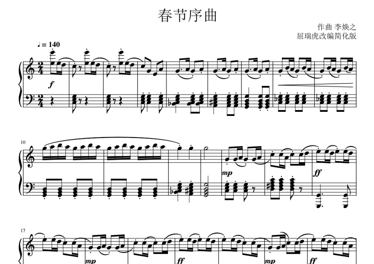 李焕之/屈瑞虎《春节序曲》钢琴谱