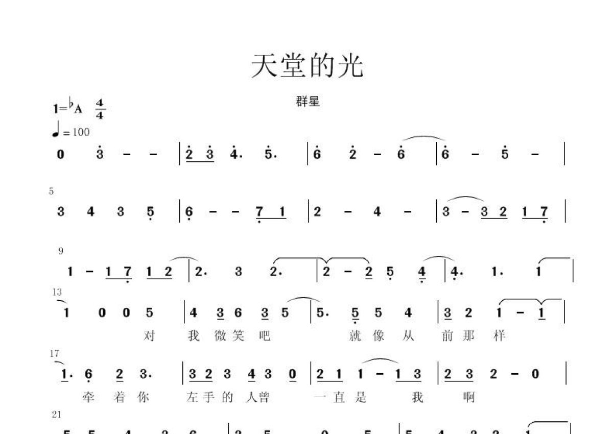 群星《天堂的光》简谱