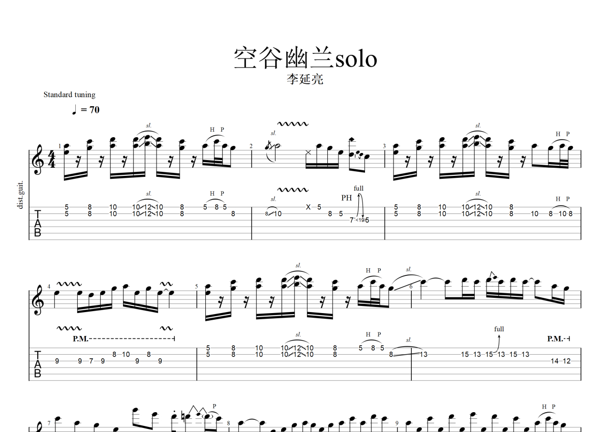 李延亮《空谷幽兰solo》电吉他谱