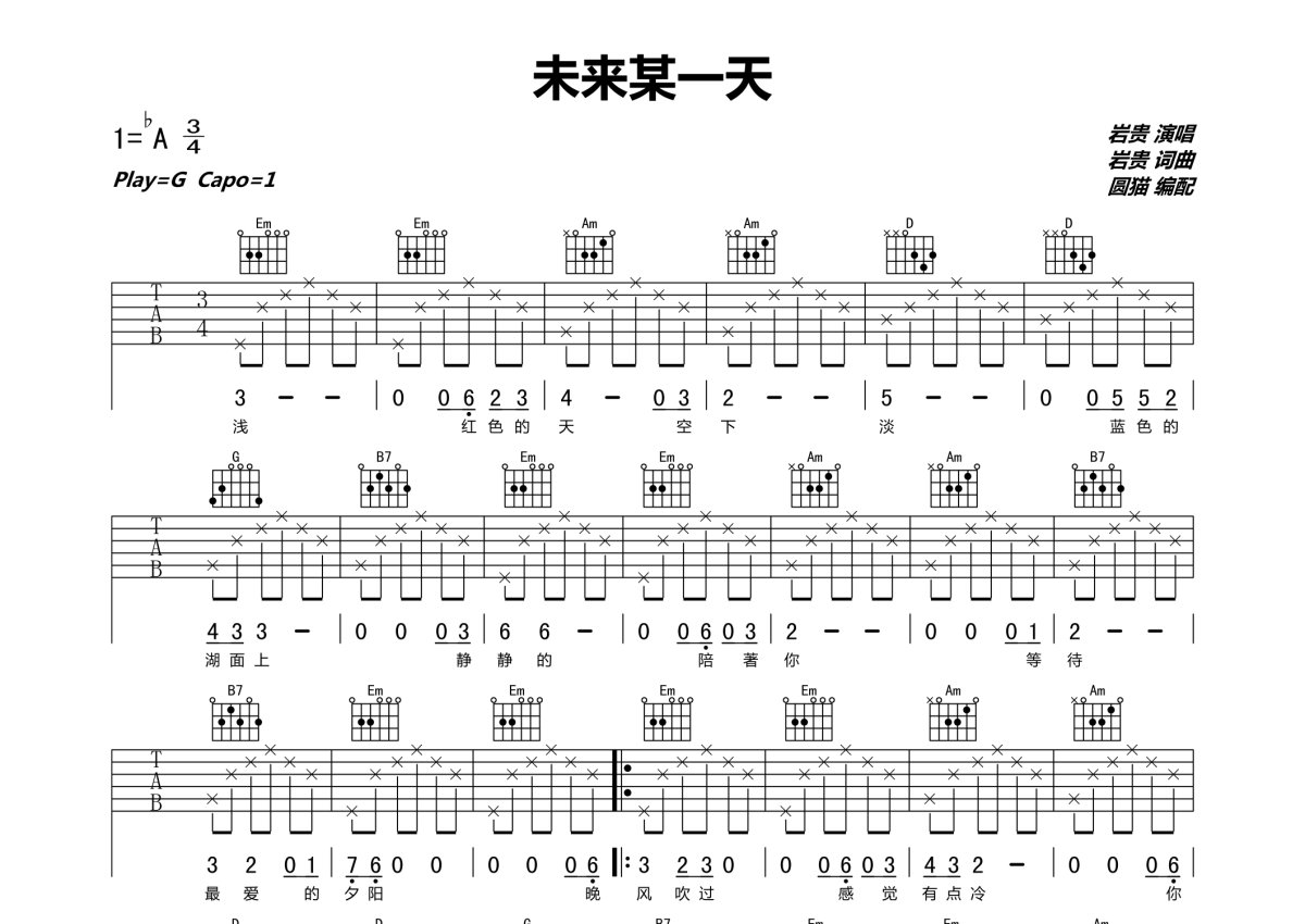 岩贵《未来某一天》吉他谱 - G调弹唱六线谱 - 原版