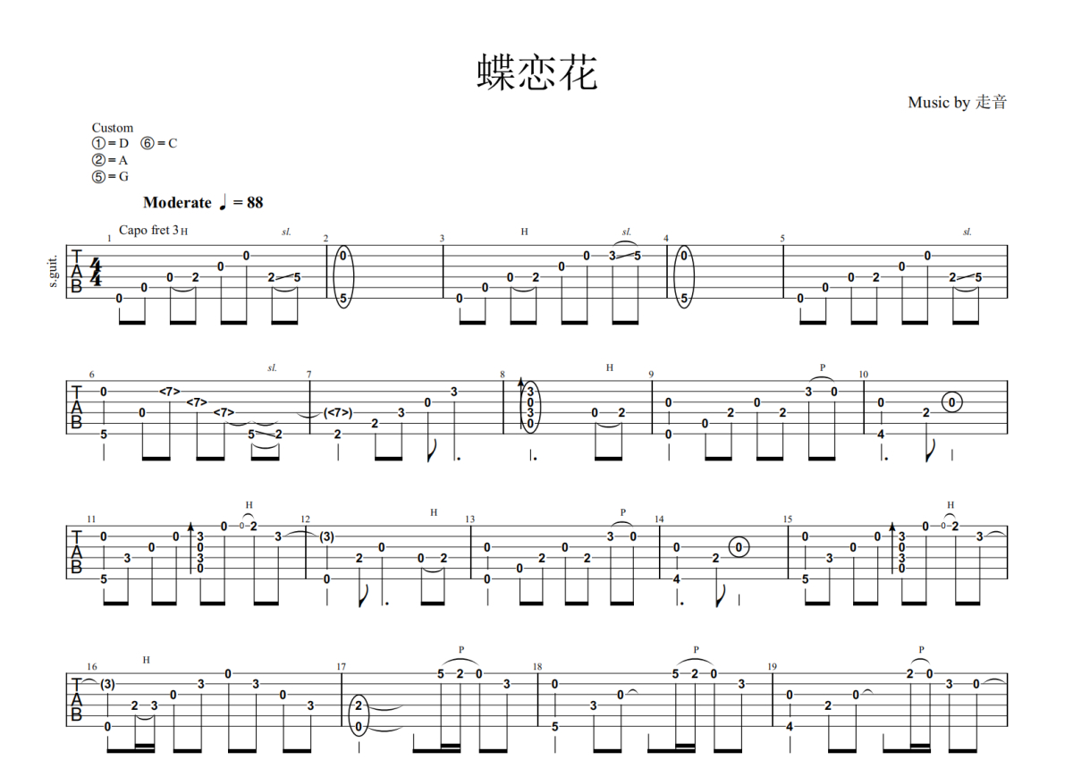 走音《蝶恋花》吉他谱 - 独奏六线谱