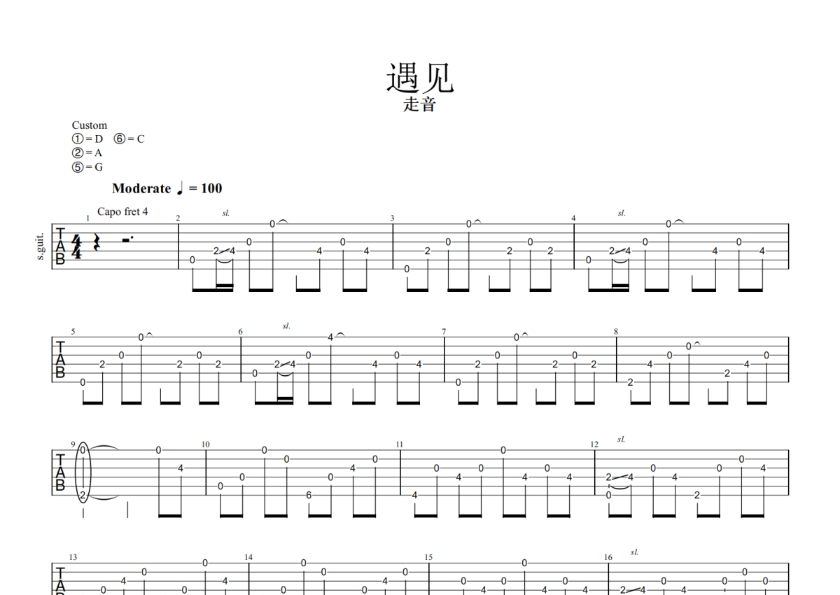 孙燕姿《遇见》吉他谱 - C调独奏六线谱 - 走音版本