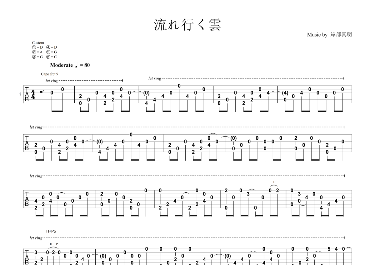 《流行的云》吉他谱 - 独奏六线谱