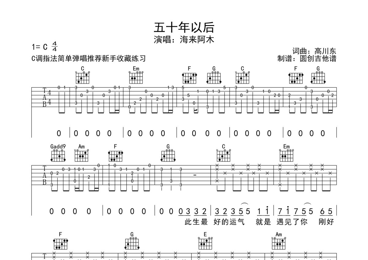 海来阿木《五十年以后》吉他谱 - C调弹唱六线谱