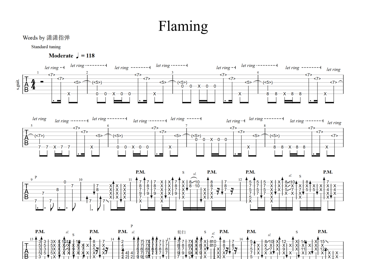 郑成河《Flaming》吉他谱 - 独奏六线谱 - 标准调弦