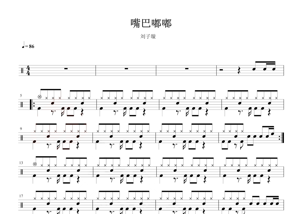 刘子璇《嘴巴嘟嘟》鼓谱 - 架子鼓谱