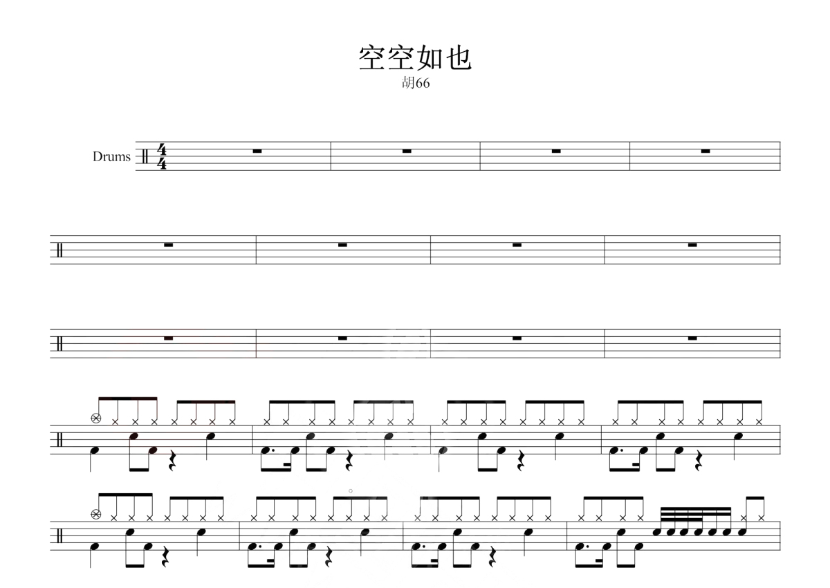 胡66《空空如也》鼓谱 - 架子鼓谱