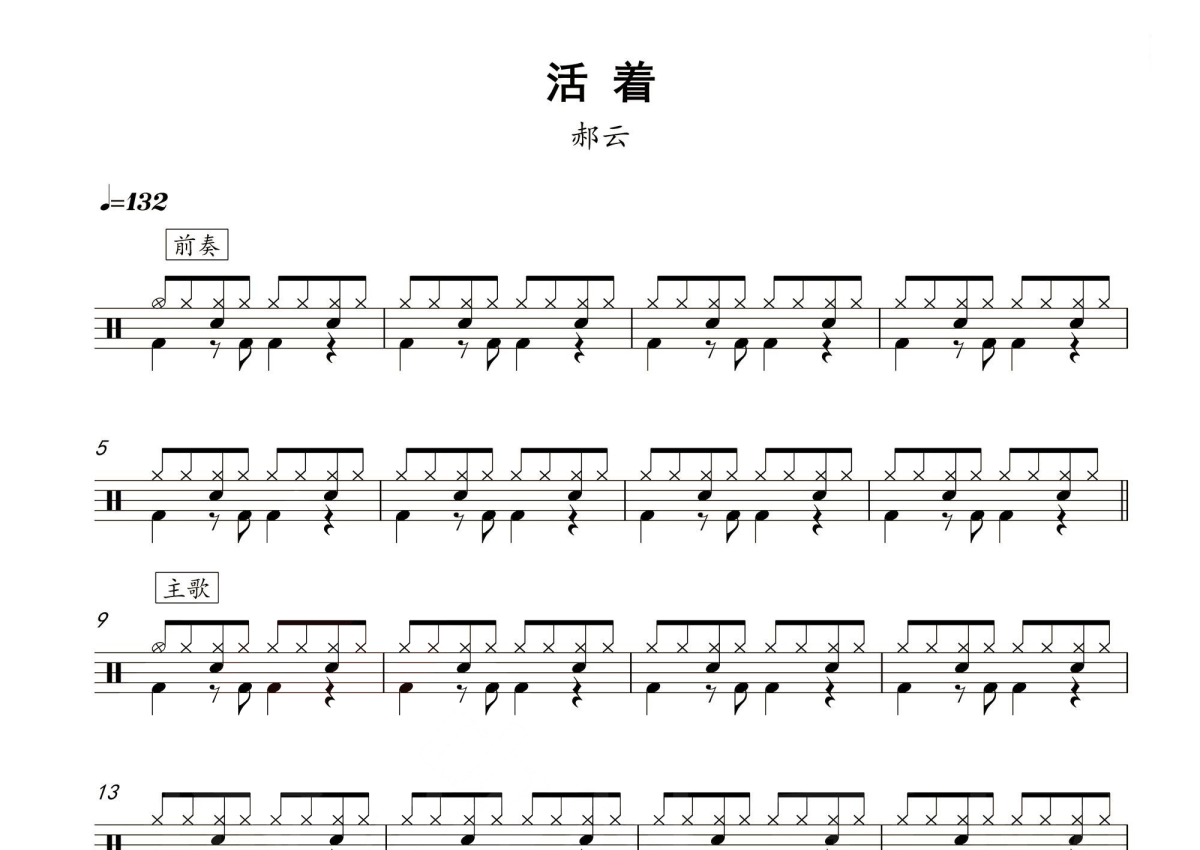 郝云《活着》鼓谱 - 架子鼓谱