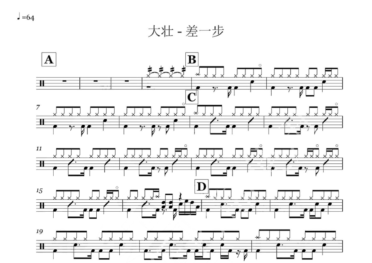 大壮《差一步》鼓谱 - 架子鼓谱