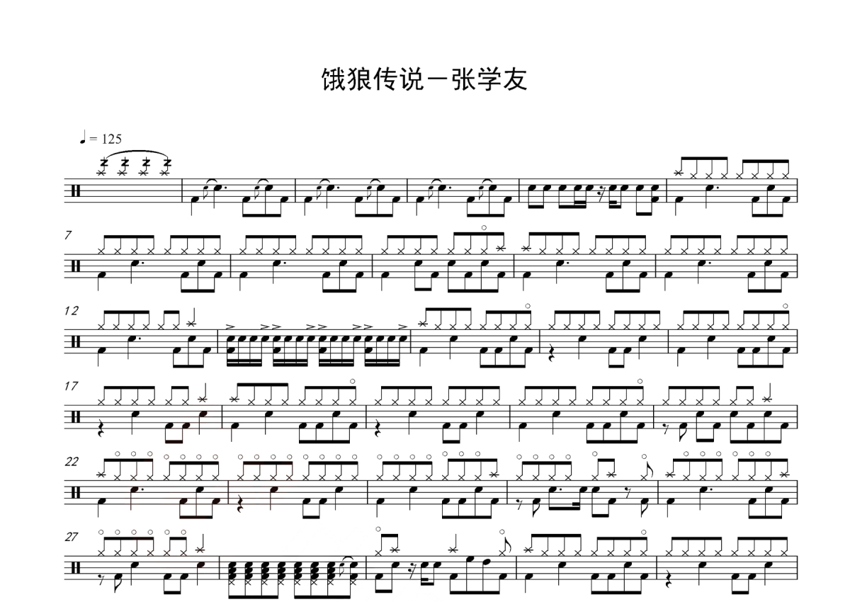 张学友《饿狼传说》鼓谱 - 架子鼓谱