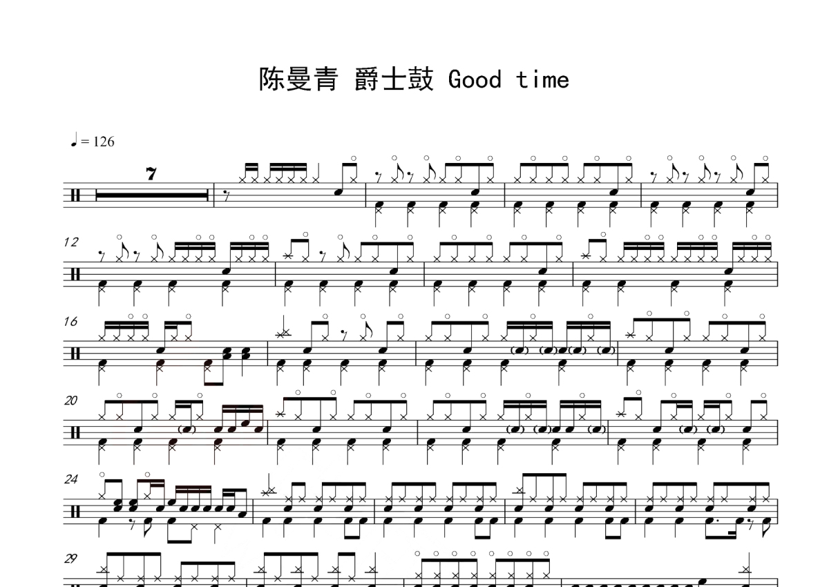 《Good Time》是亚当·扬与卡莉·蕾·杰普森演唱的一首歌曲,这份鼓谱共有两张高清图谱,图谱由 @玉帝哥哥 编配上传,图谱使用五线谱编配,使用这份Good Time架子鼓谱,你将能够轻松地敲打出这首亚当·扬与卡莉·蕾·杰普森的Good Time,快来尝试吧。《GoodTime》是亚当·扬与卡莉·蕾·杰普森合作演唱的一首流行歌曲,歌词、曲谱由亚当·扬、马修·蒂森、布莱恩·李共同编写,亚当·扬负责音乐出版,陈曼青版架子鼓谱,每分钟126拍。