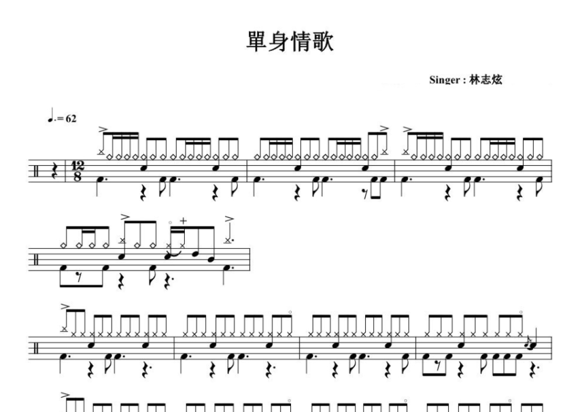 林志炫《单身情歌》鼓谱 - 架子鼓谱