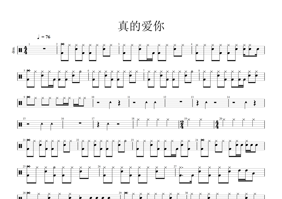 Beyond《真的爱你》鼓谱 - 架子鼓谱