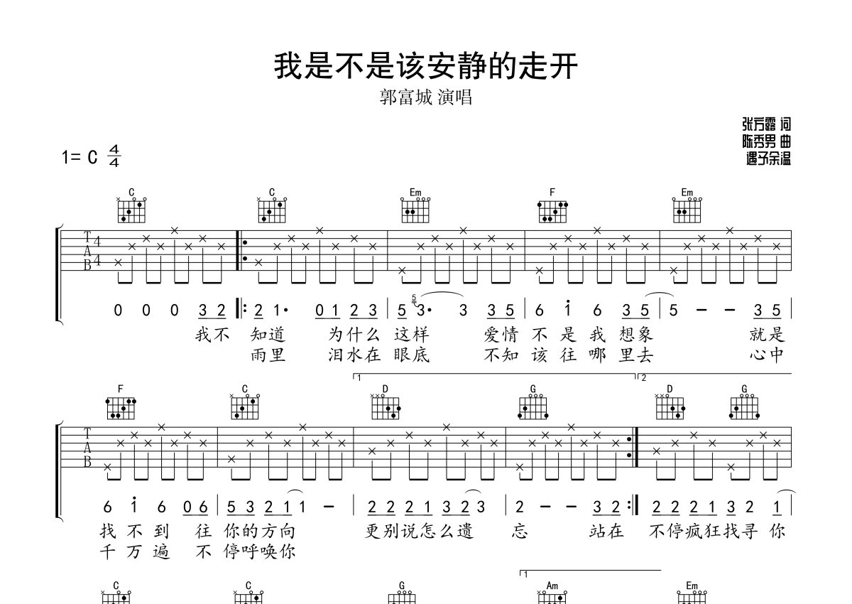 郭富城《我是不是该安静地走开》吉他谱 - C调弹唱六线谱