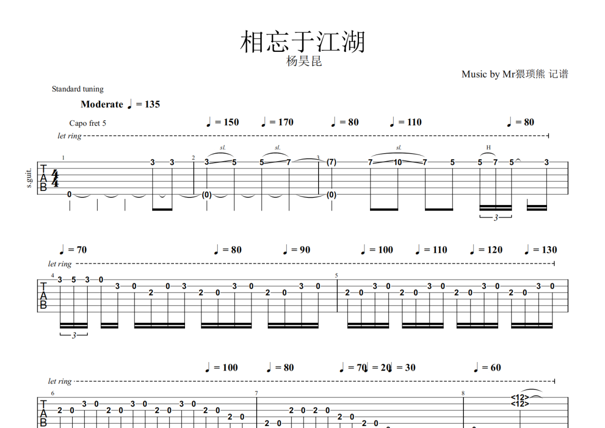 杨昊昆《相忘于江湖》吉他谱 - 独奏六线谱