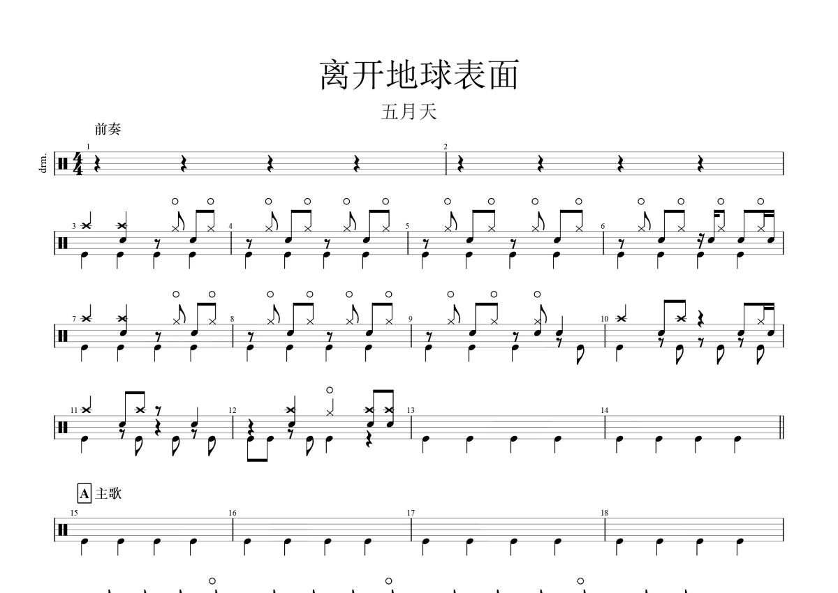 五月天《离开地球表面》鼓谱 - 架子鼓谱