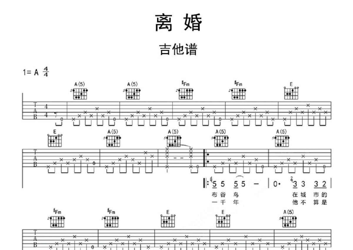 李志《离婚》吉他谱 - A调弹唱六线谱