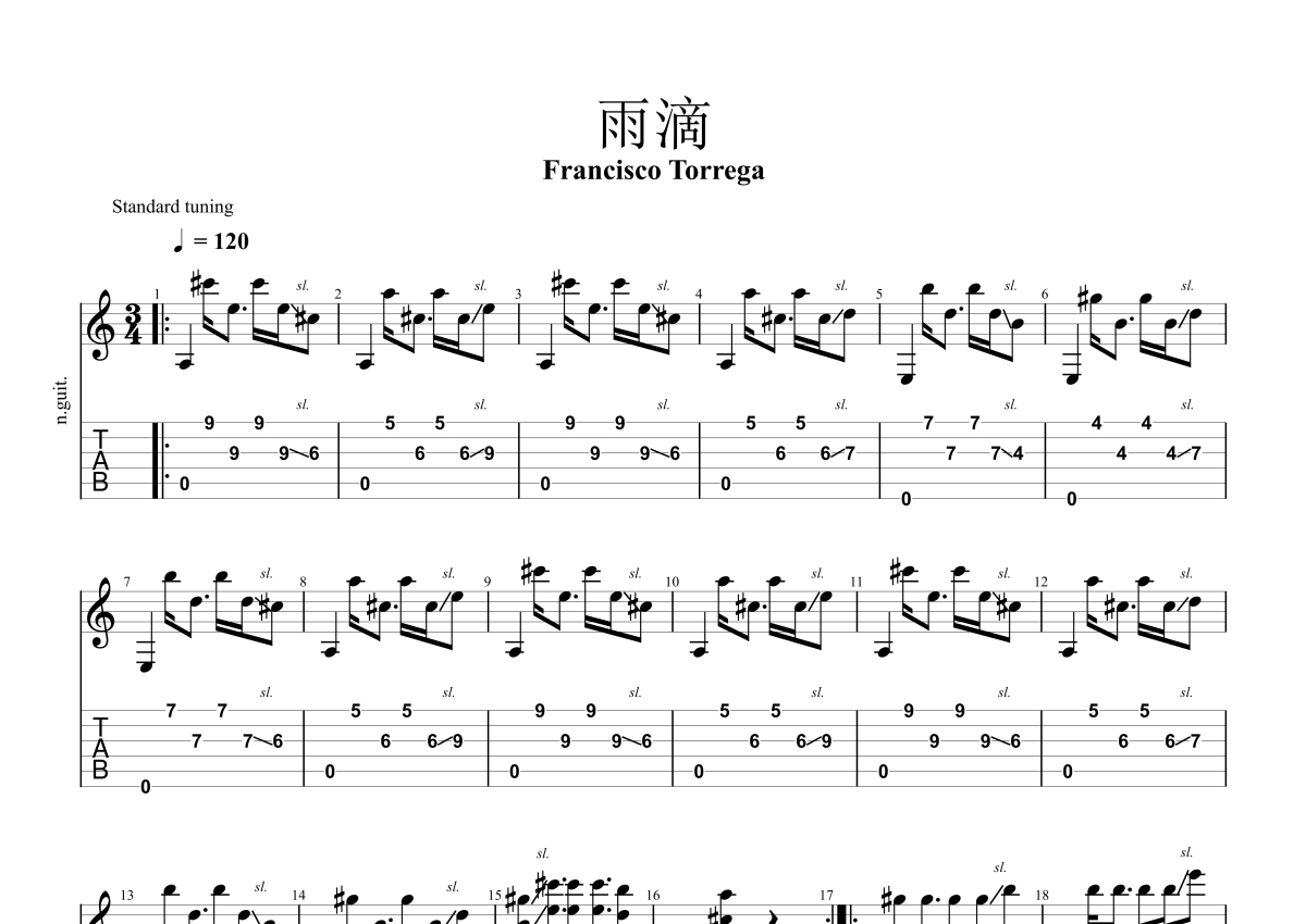 Francisco Torrega《雨滴》吉他谱 - 独奏六线谱