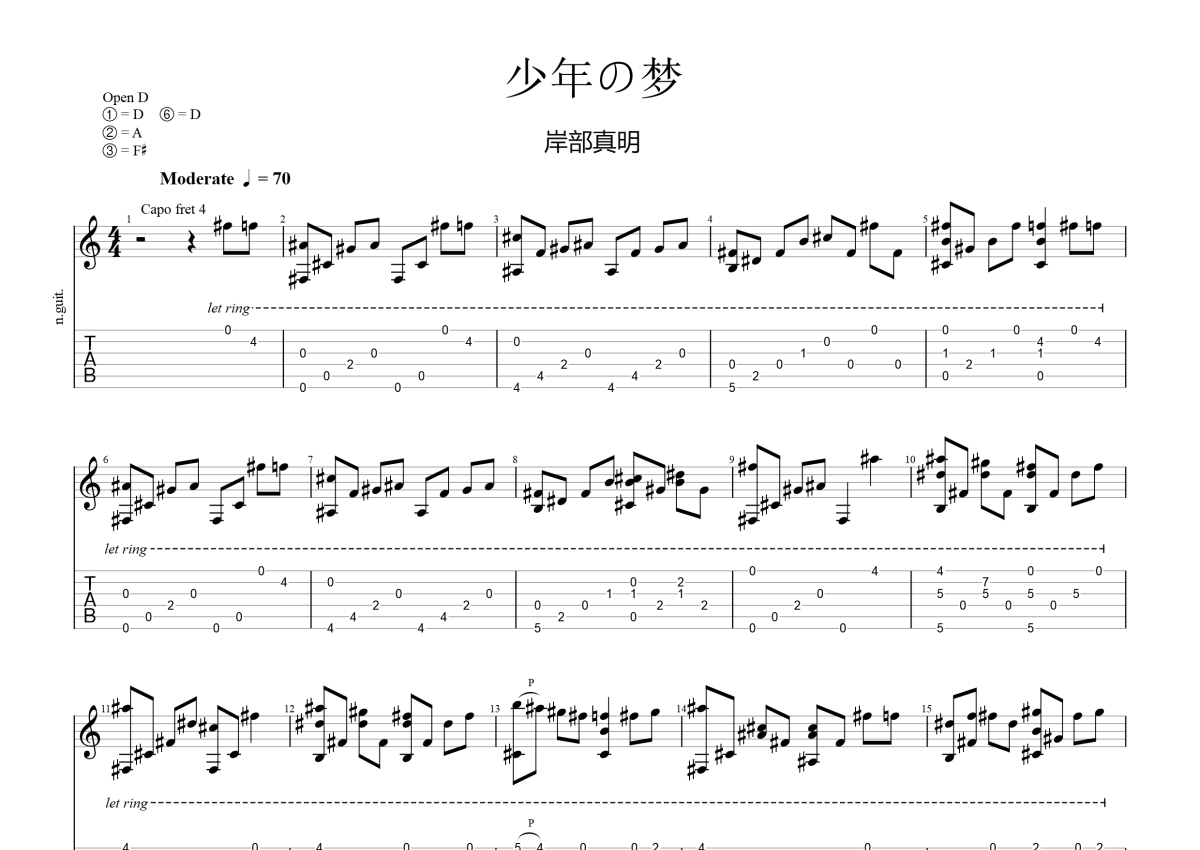 岸部真明《少年の梦》吉他谱 - 独奏六线谱