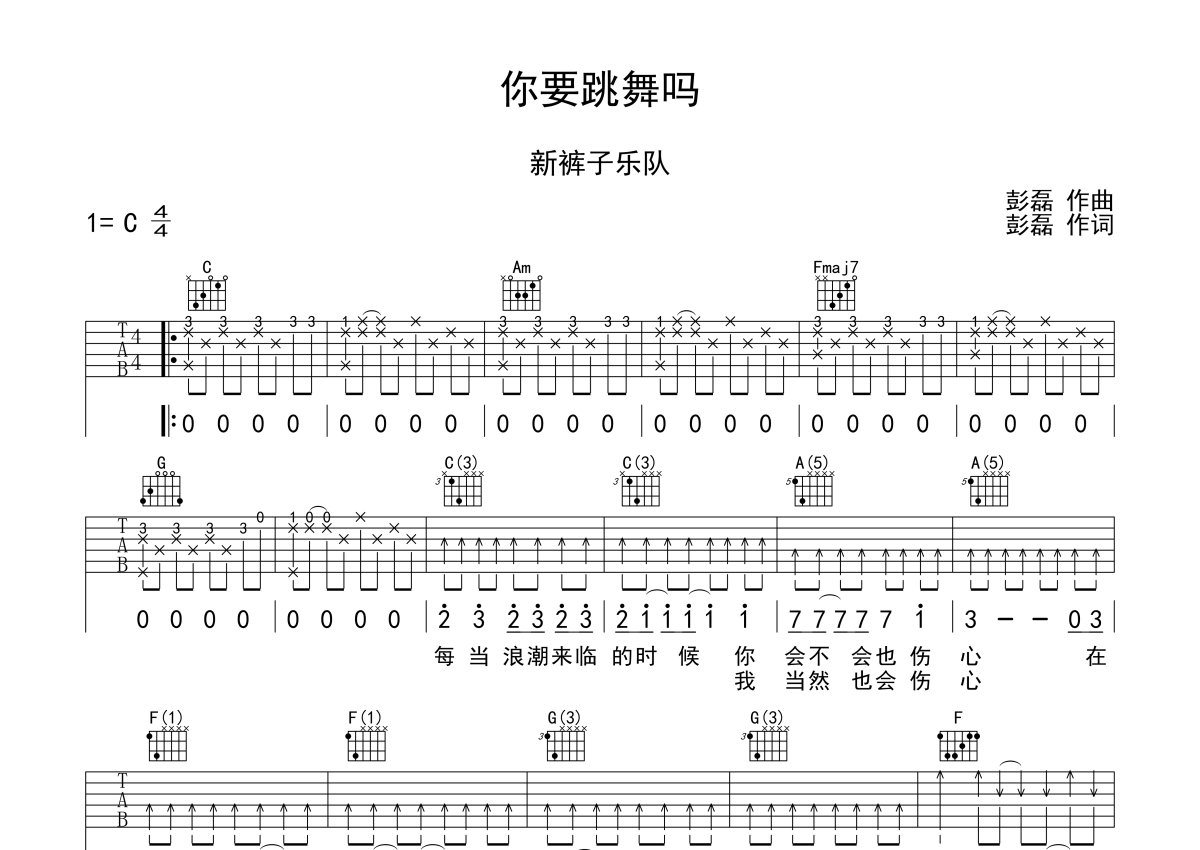 新裤子乐队《你要跳舞吗》吉他谱 - C调弹唱六线谱