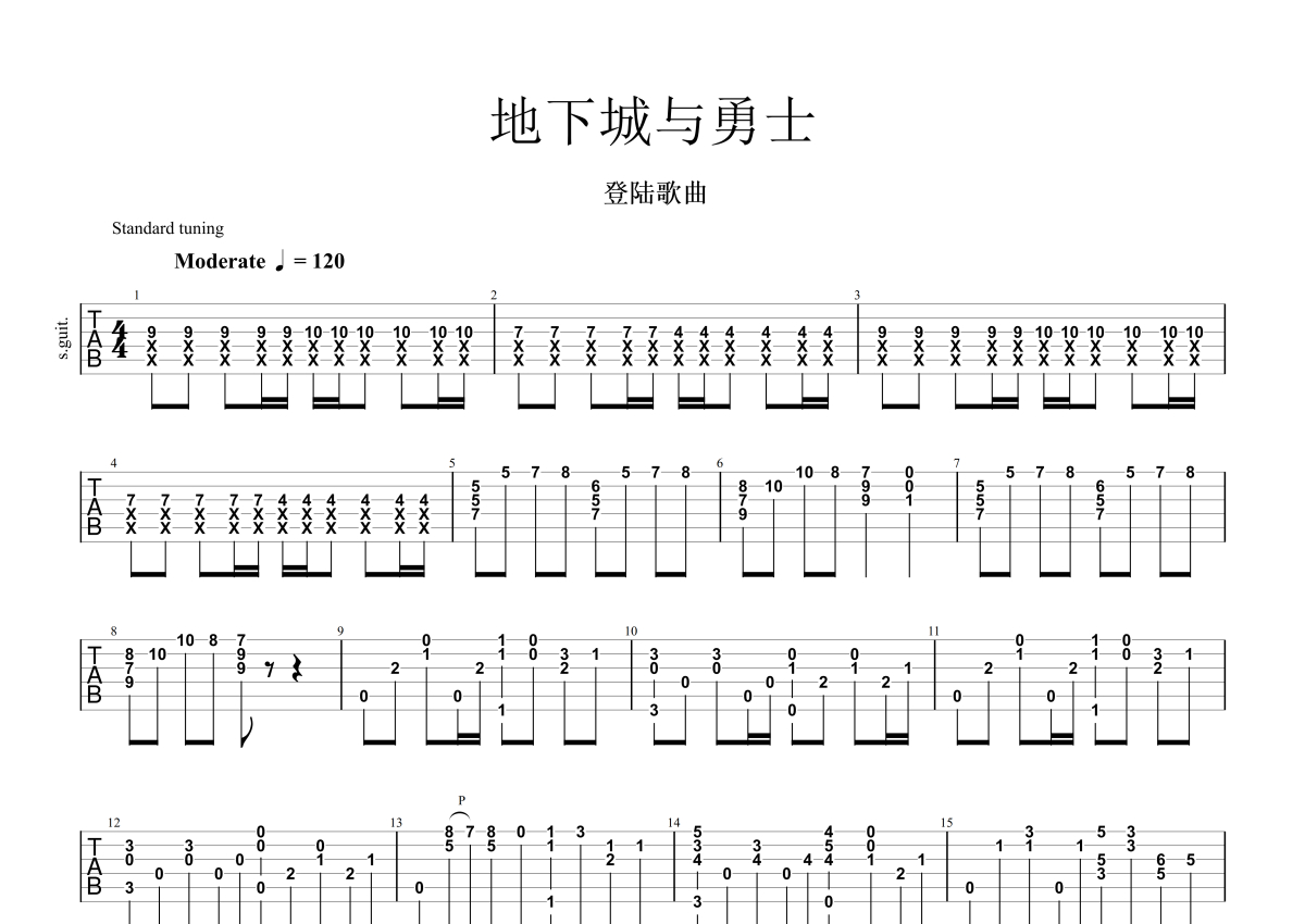 《地下城与勇士》是游戏音乐演唱的一首歌曲,本吉他谱采用的是C调指法编配,这份吉他谱共有两张高清图谱,图谱由 @玉帝哥哥 编配上传,图谱使用六线谱编配,曲谱配备了相关的视频提供浏览,使用这份地下城与勇士吉他谱,可以让你更加方便地掌握这首歌曲的演奏技巧,快来尝试吧。游戏音乐《地下城与勇士》吉他谱_C调吉他独奏谱。