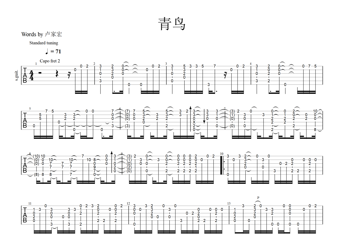 《青鸟》是火影忍者插曲演唱的一首歌曲,这份吉他谱共有两张高清图谱,图谱由 @玉帝哥哥 编配上传,图谱使用六线谱编配,使用这份青鸟吉他谱,可以让你更加方便地掌握这首歌曲的演奏技巧,快来尝试吧。火影忍者插曲《青鸟》吉他谱_吉他独奏谱。