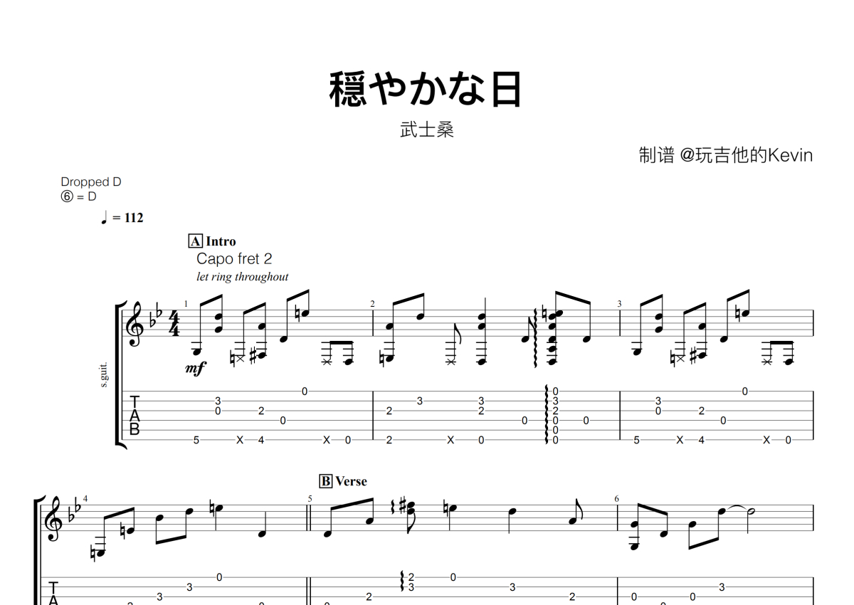 武士桑《穏やかな日》吉他谱 - 独奏六线谱