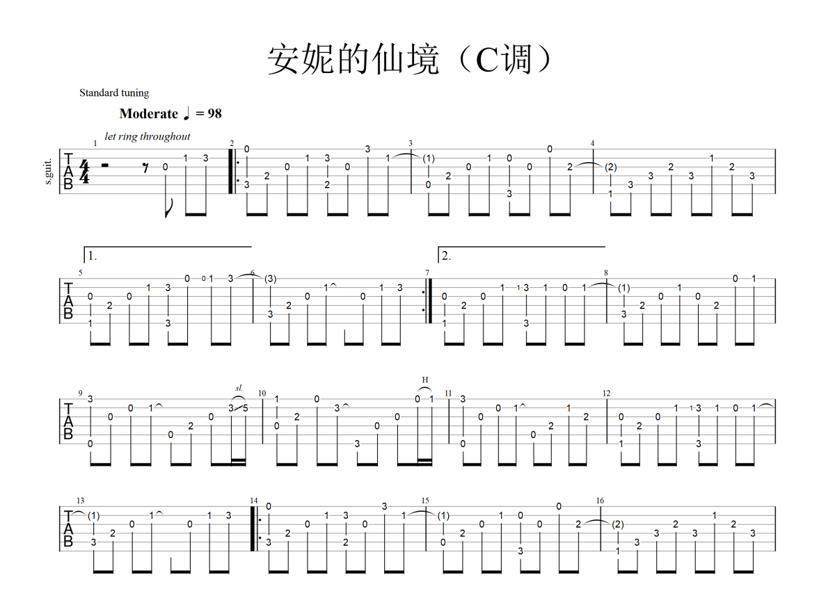 Bandari《安妮的仙境》吉他谱 - C调独奏六线谱