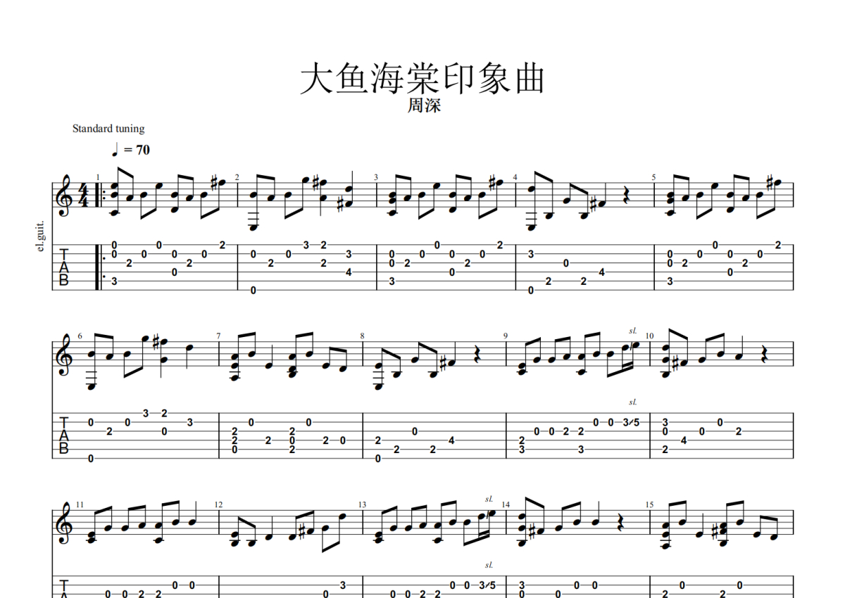 《大鱼海棠印象曲》是周深演唱的一首歌曲,带五线谱,这份吉他谱共有两张高清图谱,图谱由 @玉帝哥哥 编配上传,图谱使用六线谱编配,使用这份大鱼海棠印象曲吉他谱,可以让你更加方便地掌握这首歌曲的演奏技巧,快来尝试吧。周深《大鱼海棠印象曲》吉他谱_吉他独奏谱_带五线谱。