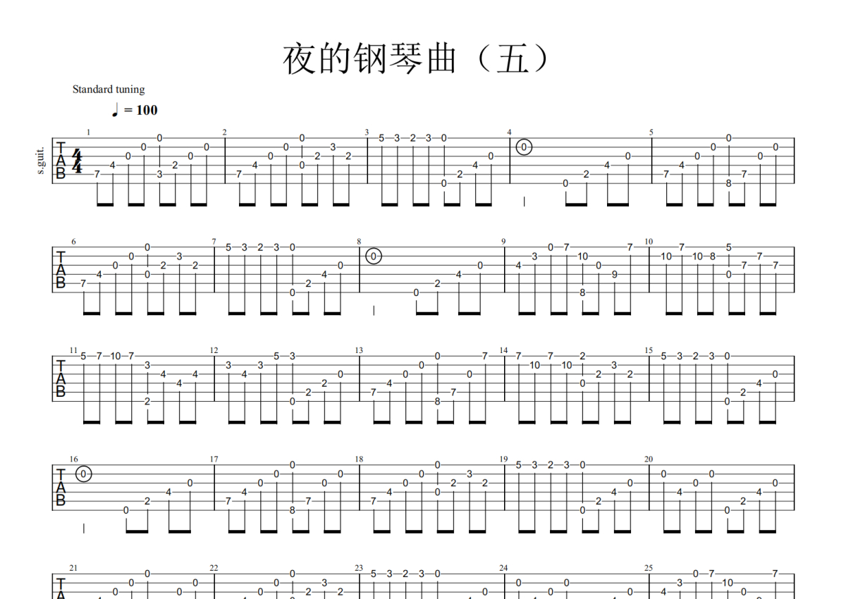 《夜的钢琴曲五》是石进演唱的一首歌曲,本吉他谱采用的是C调指法编配,这份吉他谱共有两张高清图谱,图谱由 @玉帝哥哥 编配上传,图谱使用六线谱编配,曲谱配备了相关的视频提供浏览,使用这份夜的钢琴曲五吉他谱,可以让你更加方便地掌握这首歌曲的演奏技巧,快来尝试吧。石进《夜的钢琴曲五》吉他谱_C调吉他独奏谱。