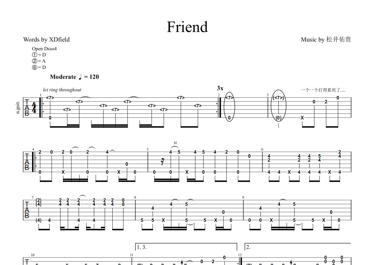 松井佑贵《Friend》吉他谱 - 独奏六线谱 - 特殊调弦