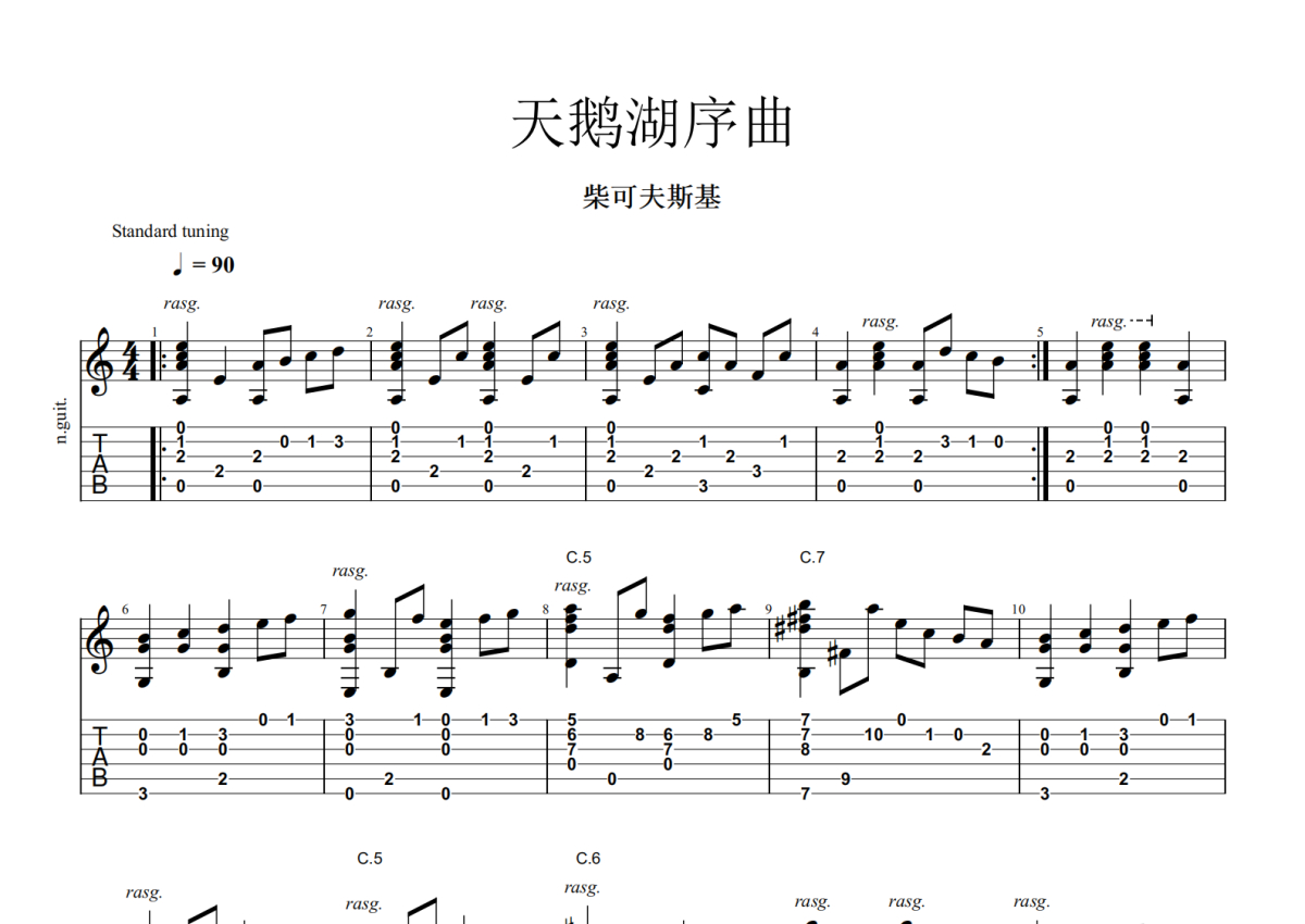 柴可夫斯基《天鹅湖序曲》吉他谱 - 独奏六线谱