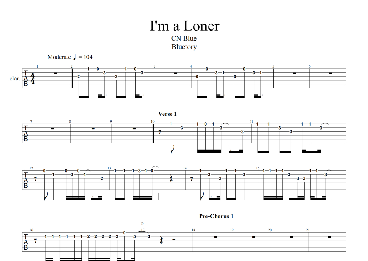 CNBlue《I'm a loner》吉他谱 - 独奏六线谱